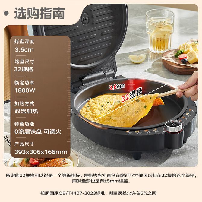 组合销售 产品介绍 产品规格 售后服务 产品咨询 发现好货 苏泊尔(SUPOR)电饼铛家用 双面加热煎饼铛煎烤机三明治机烙饼锅早餐机25mm加深烤盘火力可调JD31A847A 6500 里程 苏泊尔(SUPOR) 电饼铛 自动煎烤机 电火锅多功能 加大加深60mm双加热烙饼 锅面煎饼电饼档 两档火力 JT30A818 5700 里程 苏泊尔(SUPOR)电饼铛家用双面加热电饼档煎烤机烙饼机双面悬浮加热早餐机三明治机JJ30A648-Q 5400 里程 美的(Midea)电饼铛家用智能双面加热煎烤机烙饼机蛋饼机薄饼机煎饼烙饼锅JHN30F 4800 里程 奥克斯 电饼铛家庭用新款双面加热加大尺寸加深烤盘烙饼专用锅自动控温断电煎饼锅早餐机 4400 里程