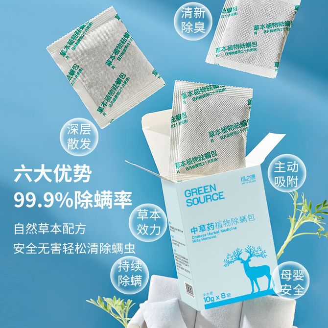 绿之源 除螨虫包去除螨虫床上免洗免晒家用抑螨 1盒/8包 中药提取,安全无害,深层持久除螨,适用广泛,枕套、床垫、沙发、猫窝、玩具箱等均可适用 兑换价格 1200 里程 会员卡别 终身白金卡 白金卡 金卡 银卡 普通卡 儿童卡 服务 由 燚购家居 发货并提供售后 颜色: 其他 购买数量: 件 库存件 配送地址: 立即购买 加入购物车 成功添加到购物车 关闭 购物车共有 种商品 总金额为: