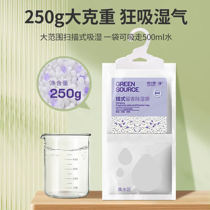 绿之源 可挂式除湿袋除霉味儿大容量卧室衣柜宿舍除湿剂薰衣草香 250g*10袋(薰衣草) 吸湿防潮,锁湿不渗,饱满实心球360°吸湿防霉,散发香气 兑换价格 2100 里程 会员卡别 终身白金卡 白金卡 金卡 银卡 普通卡 儿童卡 服务 由 燚购家居 发货并提供售后 颜色: 紫色 购买数量: 件 库存件 配送地址: 立即购买 加入购物车 成功添加到购物车 关闭 购物车共有 种商品 总金额为: 组合销售 产品介绍 产品规格 售后服务 产品咨询 发现好货 京东京造 除湿盒400ml*3盒 干燥剂除湿剂防潮剂除湿袋 室内衣服房间防潮除霉 1100 里程 京东京造 除湿桶750ml*2 除湿盒干燥剂除湿袋防潮剂吸湿防霉衣柜室内除湿 1800 里程 京东京造 冰箱除味剂 活性炭冰箱除味杀菌神器冰箱除臭剂冰箱除味盒140g*2 1100 里程 京东京造 奶昔固体清新剂 柠檬 3只装 空气清新剂 除臭剂 卫生间除臭 除味剂 香氛膏 1100 里程 京东京造 甲醛测试盒 除甲醛检测盒自测盒新车新房装修检测仪试纸 5盒装 1100 里程