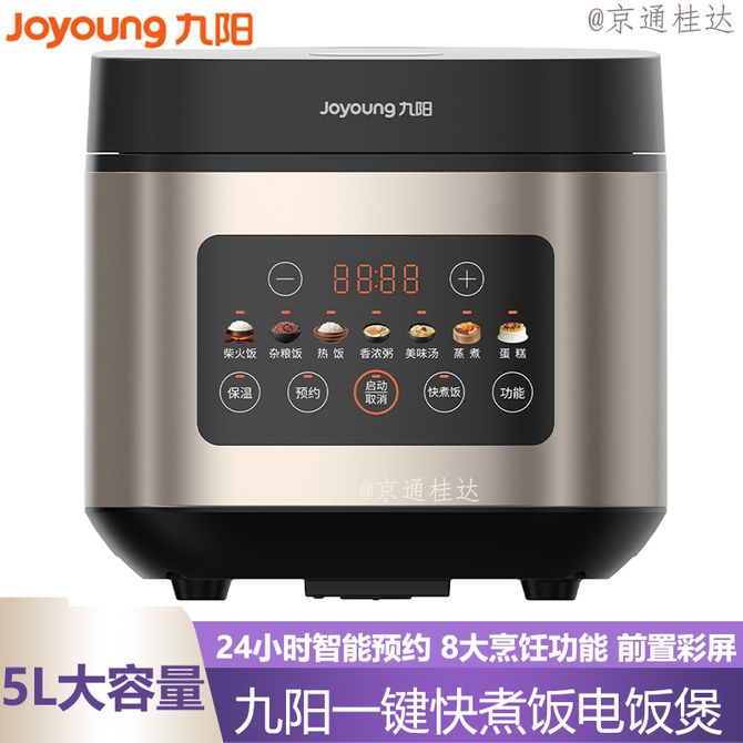 九阳/Joyoung 电饭煲5L大容量家用电饭锅多功能煮饭煲煮饭锅智能预约多种菜单功能米饭锅 5L大容量 24小时智能预约 8大烹饪功能 前置彩屏 兑换价格 12200 里程 会员卡别 终身白金卡 白金卡 金卡 银卡 普通卡 儿童卡 服务 由 广西自贸区京通桂达科技发展有限公司 发货并提供售后 颜色: 其他 购买数量: 件 库存件 配送地址: 立即购买 加入购物车 成功添加到购物车 关闭 购物车共有 种商品 总金额为: 组合销售 产品介绍 产品规格 售后服务 产品咨询 发现好货 苏泊尔(SUPOR) 电饭煲电饭锅4L大容量 不粘内胆4-6个人前置大屏面板24小时预约上蒸下煮多功能家用智能SF40FC0063 8300 里程 奥克斯/AUX 电饭煲3L电饭锅 2-3人小型预约智能电饭煲VK-309F2 5100 里程 苏泊尔(SUPOR) 迷你电饭煲家用电饭锅2-3人3L小容量蓝钻不粘内胆快煮饭功能智能预约小型多功能SF30FC0187 6100 里程 美菱/MELNG 电饭煲3L触控式预约定时MF-LC3005 4400 里程 苏泊尔(SUPOR) 煮饭煮粥智能预约多功能一锅多用小型微压电饭锅30FC0187 7200 里程