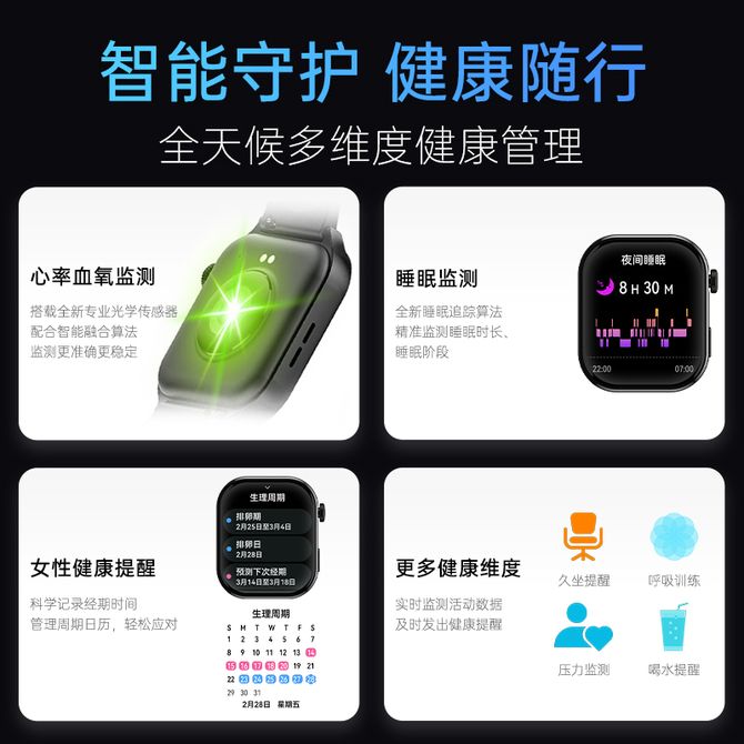 组合销售 产品介绍 产品规格 售后服务 产品咨询 发现好货 纽曼 多功能蓝牙通话智能运动手环手表i19 5500 里程 小天才 电话手表 D3 儿童智能电话手表 小学初中生男女孩精准定位防水手表 高清视频通话4G 34700 里程 小天才 电话手表 D3蓝色 儿童智能电话手表 小学初中生男女孩精准定位防水手表 高清视频通话4G 34700 里程 华为(HUAWEI) 手环9 标准版 智能运动手环 轻薄舒适睡眠监测心律失常提示 适用华为鸿蒙安卓苹果ios系统 12300 里程 爱国者(aigo) 智能手表 V8旗舰版 黑色/银色 男女通用款健康监测心率多功能通话圆盘运动手表 17400 里程