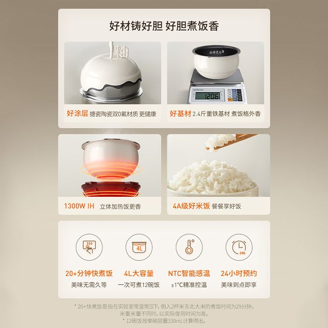 九阳/Joyoung 0氟珐琅瓷釜电饭煲家用电饭锅4L升多功能锅杂粮快煮饭智能预约 4L大容量 NTC智能感温 24小时预约 兑换价格 17400 里程 会员卡别 终身白金卡 白金卡 金卡 银卡 普通卡 儿童卡 服务 由 聚品惠家电生活馆 发货并提供售后 颜色: 其他 购买数量: 件 库存件 配送地址: 立即购买 加入购物车 成功添加到购物车 关闭 购物车共有 种商品 总金额为: 组合销售 产品介绍 产品规格 售后服务 产品咨询 发现好货 苏泊尔(SUPOR) 电饭煲电饭锅4L大容量 不粘内胆4-6个人前置大屏面板24小时预约上蒸下煮多功能家用智能SF40FC0063 8300 里程 奥克斯/AUX 电饭煲3L电饭锅 2-3人小型预约智能电饭煲VK-309F2 5100 里程 苏泊尔(SUPOR) 迷你电饭煲家用电饭锅2-3人3L小容量蓝钻不粘内胆快煮饭功能智能预约小型多功能SF30FC0187 6100 里程 美菱/MELNG 电饭煲3L触控式预约定时MF-LC3005 4400 里程 苏泊尔(SUPOR) 煮饭煮粥智能预约多功能一锅多用小型微压电饭锅30FC0187 7200 里程