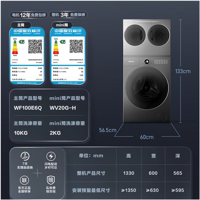 海信/Hisense 棉花糖Ultra全家筒三筒洗衣机 3洗2烘 活水健康 三桶自由组合 懒人0手洗 WF100E6Q+WV20G-H 3洗两烘分区洗 三直驱+八轴减震 99.99%除菌率 10KG洗衣机 1KG洗烘一体机 1KG洗烘一体机 兑换价格 347800 里程 会员卡别 终身白金卡 白金卡 金卡 银卡 普通卡 儿童卡 服务 由 存悦商贸 发货并提供售后 洗衣机容量: 10kg 洗衣机产品类型: 滚筒 颜色: 其他 购买数量: 件 库存件 配送地址: 立即购买 加入购物车 成功添加到购物车 关闭 购物车共有 种商品 总金额为: