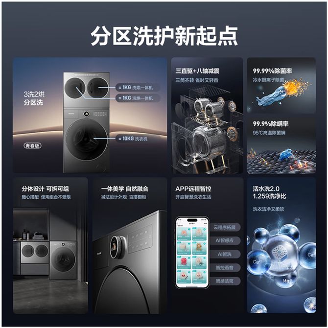 海信/Hisense 棉花糖Ultra全家筒三筒洗衣机 3洗2烘 活水健康 三桶自由组合 懒人0手洗 WF100E6Q+WV20G-H 3洗两烘分区洗 三直驱+八轴减震 99.99%除菌率 10KG洗衣机 1KG洗烘一体机 1KG洗烘一体机 兑换价格 347800 里程 会员卡别 终身白金卡 白金卡 金卡 银卡 普通卡 儿童卡 服务 由 存悦商贸 发货并提供售后 洗衣机容量: 10kg 洗衣机产品类型: 滚筒 颜色: 其他 购买数量: 件 库存件 配送地址: 立即购买 加入购物车 成功添加到购物车 关闭 购物车共有 种商品 总金额为: 组合销售 产品介绍 产品规格 售后服务 产品咨询 发现好货 小熊/Bear 迷你洗衣机 XYJ-C05V5 8200 里程 小熊/Bear 内衣裤洗衣机 双重除菌3档可选 XYJ-C05V5 8000 里程 美的/Midea 0.5kg迷你洗衣机 内衣裤洗衣机小型 迷你洗衣机 高温除菌螨 轻音洗 MNB5VCAW0E 27400 里程 OIDIRE 迷你洗衣机 双桶便携清洗机 半自动小型清洗杯婴儿衣物迷你清洗机 出差旅行宿舍用迷你洗衣机 ODI-XYJ16 10000 里程 大宇 折叠迷你洗衣机便携旅游内衣袜子小型半自动清洗机 DYXY-ZD13 13000 里程