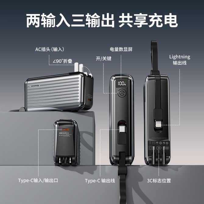 纽曼(Newmine) 【3C认证】折叠AC插头充电宝 10000mAh自带双线快充移动电源 数显墙插直充充电器 自带双充电线,PD20W双向快充,22.5W超级快充,三设备同时充,高清数显,多重安全保护,3C认证可上飞机 兑换价格 7500 里程 会员卡别 终身白金卡 白金卡 金卡 银卡 普通卡 儿童卡 服务 由 智科精品 发货并提供售后 电池容量: 8001mAh-10000mAh 颜色: 白色 黑色 购买数量: 件 库存件 配送地址: 立即购买 加入购物车 成功添加到购物车 关闭 购物车共有 种商品 总金额为: