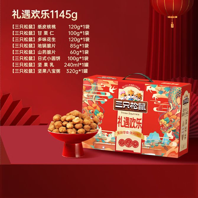 三只松鼠(Three Squireels) 坚果礼盒休闲零食大礼包节日礼品礼盒春节年货送礼干果 礼遇欢乐1145g 礼遇欢乐1145g(含3种坚果+5款零食) 兑换价格 3500 里程 会员卡别 终身白金卡 白金卡 金卡 银卡 普通卡 儿童卡 服务 由 优米酷食品专营店 发货并提供售后 规格: 礼盒 购买数量: 件 库存件 配送地址: 立即购买 加入购物车 成功添加到购物车 关闭 购物车共有 种商品 总金额为:
