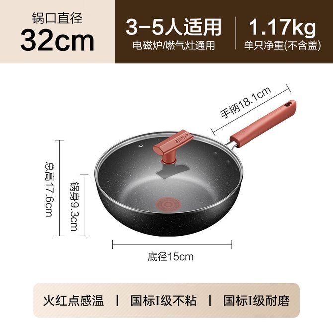 苏泊尔(SUPOR) 火红点酷石不粘煎炒锅系列 双面麦饭石色不粘锅 电磁炉燃气灶通用 适用3-5人 直径 32cm 加深锅体 内外不粘 轻量易掂锅 硅胶防烫手柄 兑换价格 9700 里程 会员卡别 终身白金卡 白金卡 金卡 银卡 普通卡 儿童卡 服务 由 人人余厨具专营店 发货并提供售后 颜色: 黑色 购买数量: 件 库存件 配送地址: 立即购买 加入购物车 成功添加到购物车 关闭 购物车共有 种商品 总金额为: