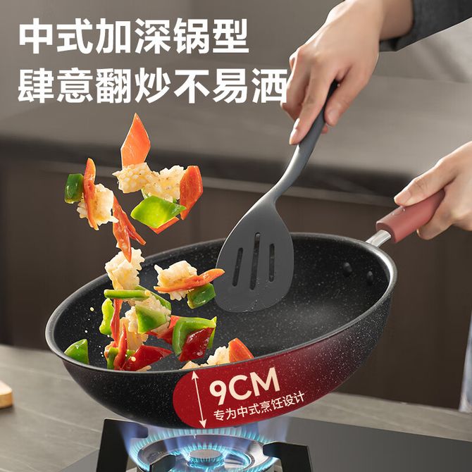 苏泊尔(SUPOR) 火红点酷石不粘煎炒锅系列 双面麦饭石色不粘锅 电磁炉燃气灶通用 适用3-5人 直径 32cm 加深锅体 内外不粘 轻量易掂锅 硅胶防烫手柄 兑换价格 9700 里程 会员卡别 终身白金卡 白金卡 金卡 银卡 普通卡 儿童卡 服务 由 人人余厨具专营店 发货并提供售后 颜色: 黑色 购买数量: 件 库存件 配送地址: 立即购买 加入购物车 成功添加到购物车 关闭 购物车共有 种商品 总金额为: 组合销售 产品介绍 产品规格 售后服务 产品咨询 发现好货 苏泊尔 炫彩易洁不粘炒锅 NC30F4 8700 里程 苏泊尔(SUPOR) 臻火蜂窝铁锅32cm 家用无涂层老式熟铁炒锅平底煎炒锅锅具 3400 里程 拜格(Bayco) 平底炒锅煎蛋锅平底锅锤纹小铁锅BG50137【28cm】 1900 里程 德世朗(DESLON) 无涂层炒锅铁锅可视化盖龙鳞0氟精铁不粘炒锅32cm炒菜锅炉灶通用 黑色 3500 里程 炊大皇/Cookerking 炒锅 30cm+盖子 无涂层聚油爆炒精铁锅炒菜锅电磁炉燃气通用锅具精铁锅 3900 里程