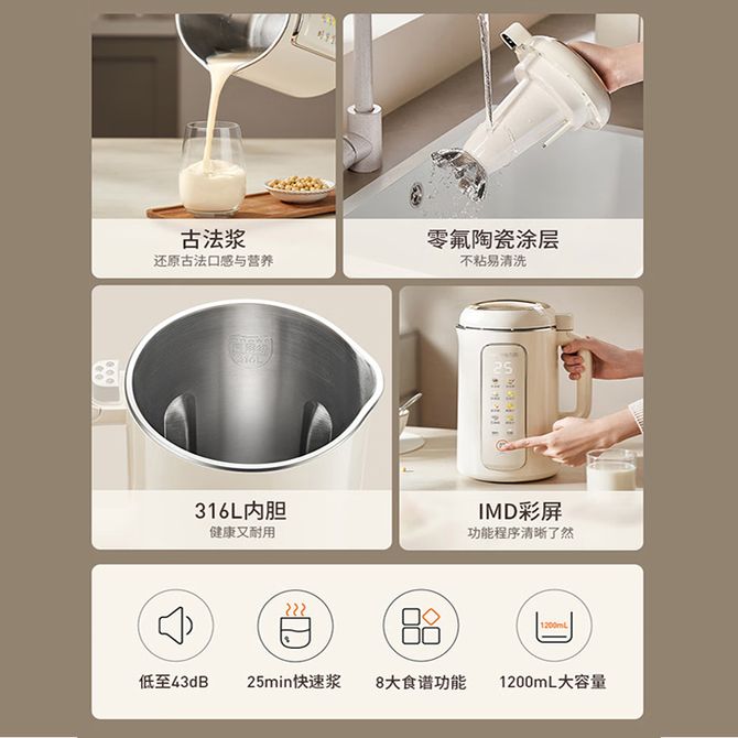 组合销售 产品介绍 产品规格 售后服务 产品咨询 发现好货 WIFER 豆浆机大容量破壁机料理机全自动榨汁机免滤304钢1200ML 3500 里程 WIFER 豆浆机全自动静音大容量多功能免煮免过滤辅食榨汁破壁机316钢不锈钢豆浆机米色豆浆机1.2L 4400 里程 九阳 Joyoung 破壁免洗豆浆机0.4-1.5L超大容量 智能熬煮多功能 轻松预约DJ15E-K350 52200 里程 小熊/Bear 豆浆机1-2人家用免过滤免煮五谷杂粮多功能破壁机豆浆机小型迷你榨汁机高温一键清洗 米白色 DJJ-H05C1 6700 里程 摩 动/modong 豆浆机家用破壁机 全自动免煮辅食料理榨汁机 多功能小型预约保温 白色 1.2L -MD-DJ29 7400 里程
