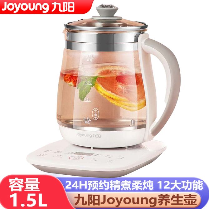 九阳/Joyoung 养生壶 1.5L容量家用多功能迷你玻璃花茶壶精煮柔炖电热水壶烧水壶煮茶壶 60秒提壶记忆 5档火力可调 24h预约 12大功能 兑换价格 3900 里程 会员卡别 终身白金卡 白金卡 金卡 银卡 普通卡 儿童卡 服务 由 中农创家电生活馆 发货并提供售后 颜色: 其他 购买数量: 件 库存件 配送地址: 立即购买 加入购物车 成功添加到购物车 关闭 购物车共有 种商品 总金额为: