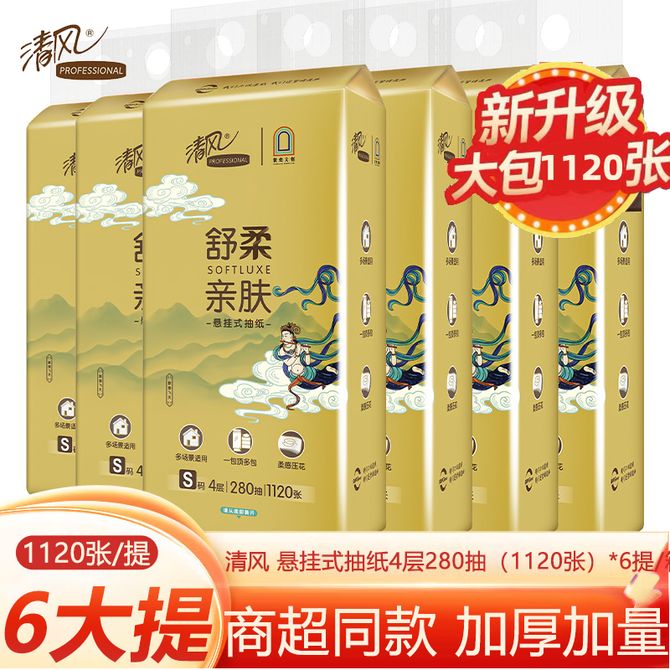 清风 抽纸【280抽*6大提】四层加厚设计 柔厚亲肤家用卫生纸巾餐巾纸 4层立体压花,干湿两用,湿水不易破,四层加厚设计,缔造厚柔质感。 兑换价格 1700 里程 会员卡别 终身白金卡 白金卡 金卡 银卡 普通卡 儿童卡 服务 由 京狮文化生活馆 发货并提供售后 包装数量: 6提 购买数量: 件 库存件 配送地址: 立即购买 加入购物车 成功添加到购物车 关闭 购物车共有 种商品 总金额为: