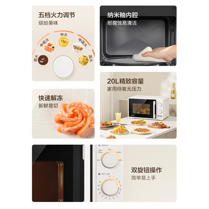 组合销售 产品介绍 产品规格 售后服务 产品咨询 发现好货 美的(Midea) 美的微波炉 21L 家用微波炉 360°转盘式 M1-211A / M1-L213B 随机发 14700 里程 美的/Midea 微波炉20L家用机械转盘式五档火力解冻 PM20A0 13500 里程 美的/Midea 家用微波炉 多功能微电脑操控 360°转盘式加热 20L容量 M1-L213C 17000 里程 格兰仕/Galanz 小型平板 家用700瓦 快速解冻 光波烧烤 智能预约电脑版微波炉 20升 G70F20CN1L-DG(B0) 17800 里程 格兰仕/Galanz 20L机械式旋钮转盘加热微波炉D4W-S20 13500 里程