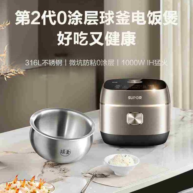 苏泊尔(SUPOR) 电饭煲 家用多功能柴火饭煮粥电饭锅聚能球釜内胆均匀速热0涂层球釜IH电饭煲 第2代0涂层球釜电饭煲 316L不锈钢 微坑防粘0涂层 1000WIH猛火 兑换价格 26100 里程 会员卡别 终身白金卡 白金卡 金卡 银卡 普通卡 儿童卡 服务 由 广西桂福礼供应链管理有限公司 发货并提供售后 颜色: 其他 购买数量: 件 库存件 配送地址: 立即购买 加入购物车 成功添加到购物车 关闭 购物车共有 种商品 总金额为: 组合销售 产品介绍 产品规格 售后服务 产品咨询 发现好货 苏泊尔(SUPOR) 电饭煲电饭锅4L大容量 不粘内胆4-6个人前置大屏面板24小时预约上蒸下煮多功能家用智能SF40FC0063 8300 里程 奥克斯/AUX 电饭煲3L电饭锅 2-3人小型预约智能电饭煲VK-309F2 5100 里程 苏泊尔(SUPOR) 迷你电饭煲家用电饭锅2-3人3L小容量蓝钻不粘内胆快煮饭功能智能预约小型多功能SF30FC0187 6100 里程 美菱/MELNG 电饭煲3L触控式预约定时MF-LC3005 4400 里程 苏泊尔(SUPOR) 煮饭煮粥智能预约多功能一锅多用小型微压电饭锅30FC0187 7200 里程