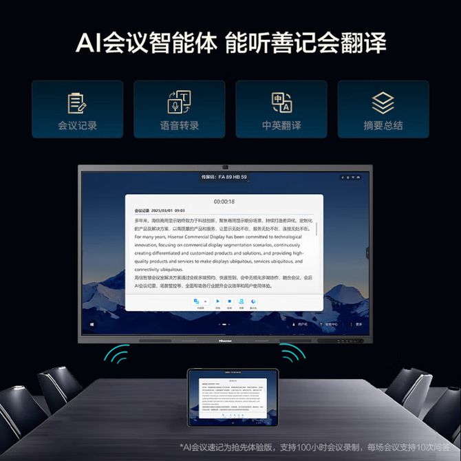 海信/Hisense 65英寸 AI会议平板一体机触摸屏电子白板 视频会议 商用显示器 65XW5F 免驱4K投屏 5000万像素 兑换价格 473900 里程 会员卡别 终身白金卡 白金卡 金卡 银卡 普通卡 儿童卡 服务 由 存悦商贸 发货并提供售后 颜色: 黑色 购买数量: 件 库存件 配送地址: 立即购买 加入购物车 成功添加到购物车 关闭 购物车共有 种商品 总金额为:
