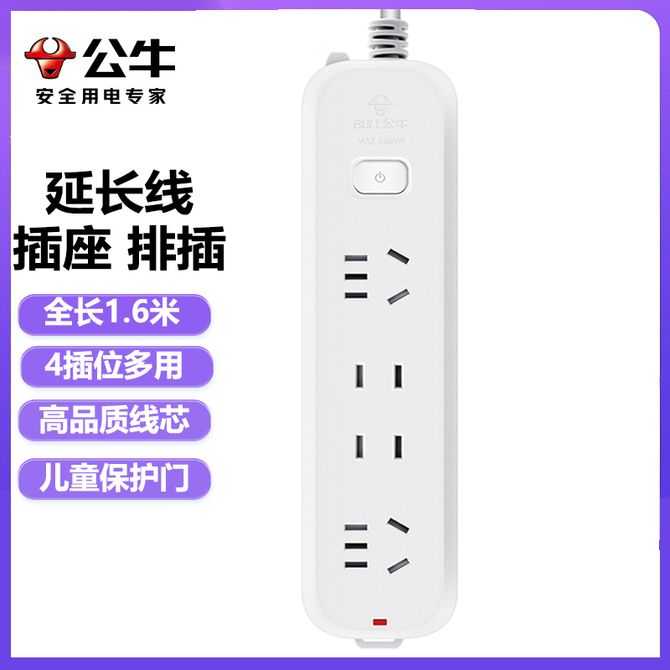 公牛(BULL) 新国标插线排延长线插座1.6米长插排 插线板接线板4插位总控开关排插 全长1.6米 4插位多用 高品质线芯 儿童保护门 兑换价格 1600 里程 会员卡别 终身白金卡 白金卡 金卡 银卡 普通卡 儿童卡 服务 由 中农创家电生活馆 发货并提供售后 插排线: 有线 插位: 4插位 购买数量: 件 库存件 配送地址: 立即购买 加入购物车 成功添加到购物车 关闭 购物车共有 种商品 总金额为: