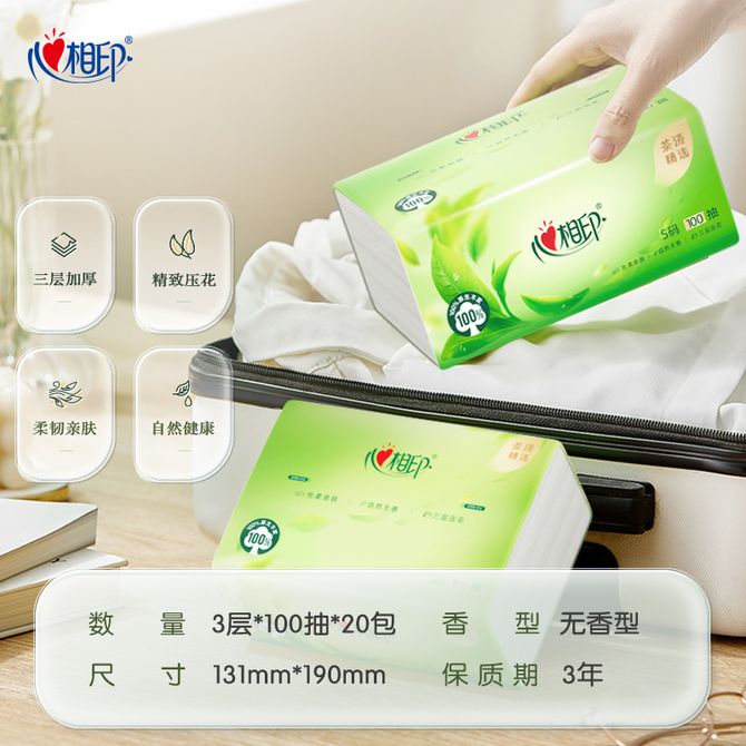 心相印 抽纸20包100抽装三层纸巾【新旧包装随机发】 抽纸100抽20包 兑换价格 2700 里程 会员卡别 终身白金卡 白金卡 金卡 银卡 普通卡 儿童卡 服务 由 华礼个护 发货并提供售后 包装数量: 20包 购买数量: 件 库存件 配送地址: 立即购买 加入购物车 成功添加到购物车 关闭 购物车共有 种商品 总金额为: 组合销售 产品介绍 产品规格 售后服务 产品咨询 发现好货 维达卷纸 卫生纸实惠装厕纸家用厕所纸巾手纸整箱批有芯大卷家庭装 1200-2300 里程 维达 Vinda 卷纸 140g/卷*10卷 蓝色经典3层卫生纸 1300 里程 心相印抽纸 茶语丝享系列 量贩家庭装 3层*100抽*4包(茶香 压花) 1100 里程 心相印 经典系列 二层面巾纸 180抽*6包*1提 1100 里程 维达Vinda 超韧系列抽纸(3层*130抽*6包) 原生木浆卫生餐巾纸婴儿面巾纸 6包优惠装 1100 里程