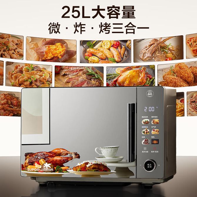 苏泊尔(SUPOR) 变频微波炉OD25AW882 烤箱 微炸烤一体机家用空气炸锅三合一 25L大容量一级能效小型光波炉 25L 0涂层不锈钢腔体 烤箱 微炸烤一体机家用空气炸锅三合一 25L大容量一级能效小型光波炉 兑换价格 71700 里程 会员卡别 终身白金卡 白金卡 金卡 银卡 普通卡 儿童卡 服务 由 纳华优选 发货并提供售后 颜色: 灰色 购买数量: 件 库存件 配送地址: 立即购买 加入购物车 成功添加到购物车 关闭 购物车共有 种商品 总金额为: