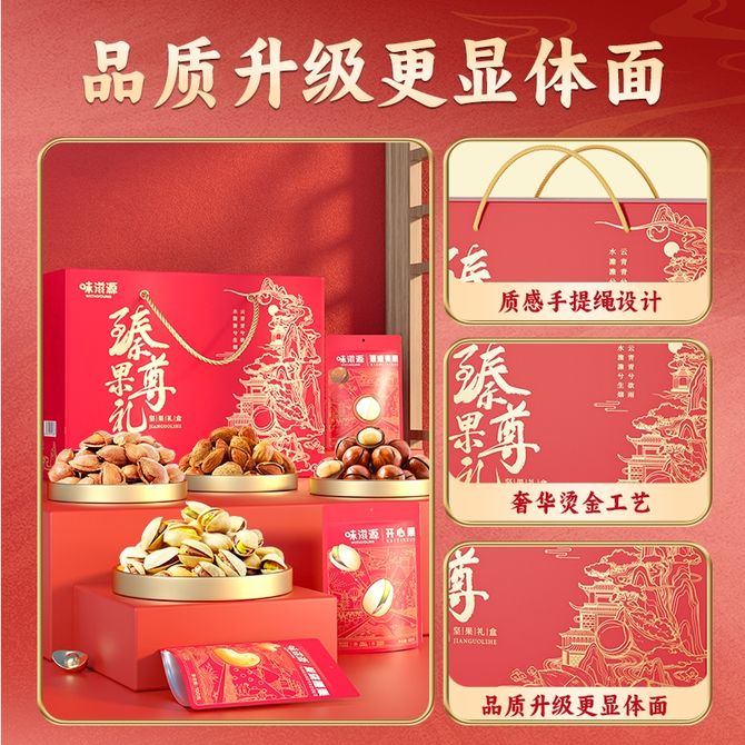 味滋源 年货节 节日送礼 送长辈送朋友 臻果尊礼1840g 臻果尊礼1840g 兑换价格 4000 里程 会员卡别 终身白金卡 白金卡 金卡 银卡 普通卡 儿童卡 服务 由 多宝商城 发货并提供售后 规格: 礼盒 购买数量: 件 库存件 配送地址: 立即购买 加入购物车 成功添加到购物车 关闭 购物车共有 种商品 总金额为: 组合销售 产品介绍 产品规格 售后服务 产品咨询 发现好货 西域美农 新疆薄皮核桃500g/袋 新疆特产原味 薄皮核桃 1300 里程 西域美农 烘焙腰果200g 坚果特产 休闲零食 带皮腰果仁 1600 里程 味滋源 紫皮腰果2袋装 每袋100g 1100 里程 沃隆每日坚果(A)175g盒装 1700 里程 百草味 坚果炒货夏威夷果100g*1袋 1100 里程