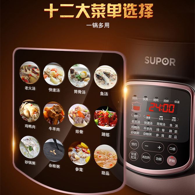 苏泊尔(SUPOR) 电炖锅家用大容量电砂锅煲汤锅炖肉锅老火汤煲粥煮粥炖汤 底面全贴合加热 还原明火烹饪 十二大菜单选择 兑换价格 20900 里程 会员卡别 终身白金卡 白金卡 金卡 银卡 普通卡 儿童卡 服务 由 聚品惠家电生活馆 发货并提供售后 颜色: 其他 购买数量: 件 库存件 配送地址: 立即购买 加入购物车 成功添加到购物车 关闭 购物车共有 种商品 总金额为: