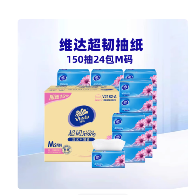 维达 超韧抽纸3层M码大尺寸餐面纸巾 纸质厚实 湿水不易破 (整箱) 3层 150抽吸水超强力 触感柔软,规格:24包=1箱 兑换价格 3200 里程 会员卡别 终身白金卡 白金卡 金卡 银卡 普通卡 儿童卡 服务 由 臻雀个护馆 发货并提供售后 包装数量: 箱 购买数量: 件 库存件 配送地址: 立即购买 加入购物车 成功添加到购物车 关闭 购物车共有 种商品 总金额为: 组合销售 产品介绍 产品规格 售后服务 产品咨询 发现好货 维达卷纸 卫生纸实惠装厕纸家用厕所纸巾手纸整箱批有芯大卷家庭装 1200-2300 里程 维达 Vinda 卷纸 140g/卷*10卷 蓝色经典3层卫生纸 1300 里程 心相印抽纸 茶语丝享系列 量贩家庭装 3层*100抽*4包(茶香 压花) 1100 里程 心相印 经典系列 二层面巾纸 180抽*6包*1提 1100 里程 维达Vinda 超韧系列抽纸(3层*130抽*6包) 原生木浆卫生餐巾纸婴儿面巾纸 6包优惠装 1100 里程
