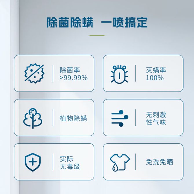 除菌率99.99% 灭螨率100% 无刺激性气味 植物除螨 免洗免晒