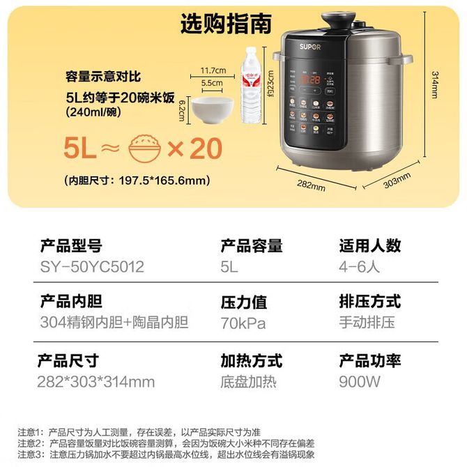 苏泊尔(SUPOR) 电压力锅SY-50YC5012 深汤系列5L 家用智能 0涂层钢胆智能预约双胆电饭煲高压锅 深汤系列5L 家用智能 0涂层钢胆智能预约双胆电饭煲高压锅 兑换价格 21700 里程 会员卡别 终身白金卡 白金卡 金卡 银卡 普通卡 儿童卡 服务 由 纳华优选 发货并提供售后 颜色: 玫瑰金 购买数量: 件 库存件 配送地址: 立即购买 加入购物车 成功添加到购物车 关闭 购物车共有 种商品 总金额为: