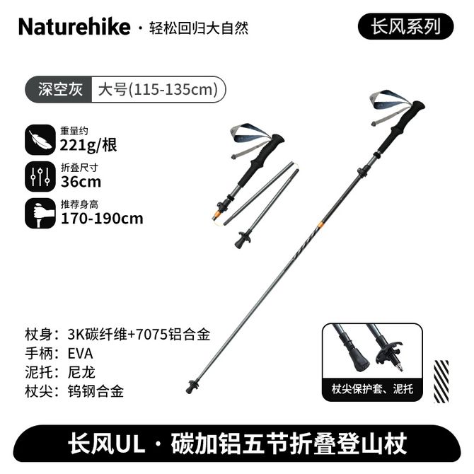 挪客(NatureHike) 长风UL-碳纤维加铝合金折叠登山杖超轻徒步户外手杖 深空灰-【大号115-135cm】 挪客 长风UL五节碳加铝纤折叠伸缩登山杖CNK2450DS012 深空灰/115-135cm 兑换价格 5400 里程 会员卡别 终身白金卡 白金卡 金卡 银卡 普通卡 儿童卡 服务 由 亿宇安百户外专营店 发货并提供售后 颜色: 深灰色 购买数量: 件 库存件 配送地址: 立即购买 加入购物车 成功添加到购物车 关闭 购物车共有 种商品 总金额为: 组合销售 产品介绍 产品规格 售后服务 产品咨询 发现好货 Jeep 户外轻便露营便携折叠椅-特大号 42*42*70cm (多色可选) 1500 里程 探险者(TAN XIAN ZHE) 露营车推车户外营地折叠拖车野餐野营桌板手拉车 黑色 6600 里程 尚烤佳 折叠椅 折叠凳 月亮椅 钓鱼凳子 户外便携折叠露营椅子 写生椅子(山晴)SKJ-367 1900 里程 徽羚羊 户外露营便携折叠logo椅-特大号-44*44*72cm 1500-1700 里程 沃特曼 【加高加厚】户外折叠椅靠背躺椅月亮椅露营午休凳子便携77232 4800 里程