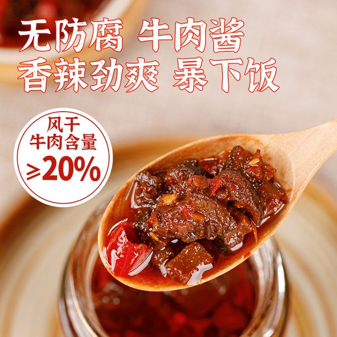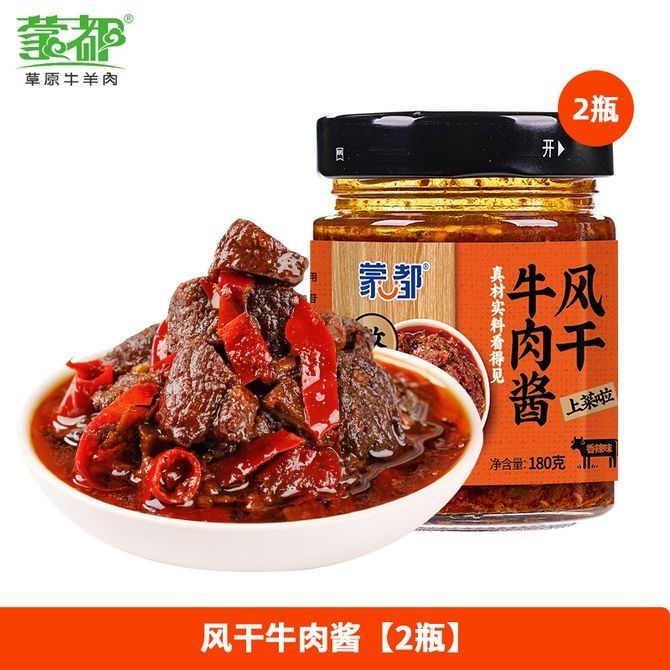 蒙都 风干牛肉酱180g*2瓶装 大块牛肉拌饭酱 特质风干牛肉酱 风干牛肉酱180g*2瓶(香辣) 大块风干牛肉 香菇豆豉入味 爽辣鲜椒 兑换价格 1500 里程 会员卡别 终身白金卡 白金卡 金卡 银卡 普通卡 儿童卡 服务 由 铭钰食品专营 发货并提供售后 规格: 罐装 购买数量: 件 库存件 配送地址: 立即购买 加入购物车 成功添加到购物车 关闭 购物车共有 种商品 总金额为: 组合销售 产品介绍 产品规格 售后服务 产品咨询 发现好货 康师傅 经典红烧牛肉面五连包104g*5袋泡面袋装方便面 1100 里程 锋味派 火山石烤肠 纯肉香肠 台湾脆皮热狗肠 烧烤空炸食材 【单盒装】原味黑猪肉 400g 3000 里程 白象 大辣娇 韩式火鸡面10袋 1300 里程 白象方便面经典老坛酸菜牛肉119g*12桶泡面整箱装 1700 里程 海天 黄豆酱800g*2(调味酱 甜面酱 拌饭拌面炒菜酱 酱料调料) 1300 里程