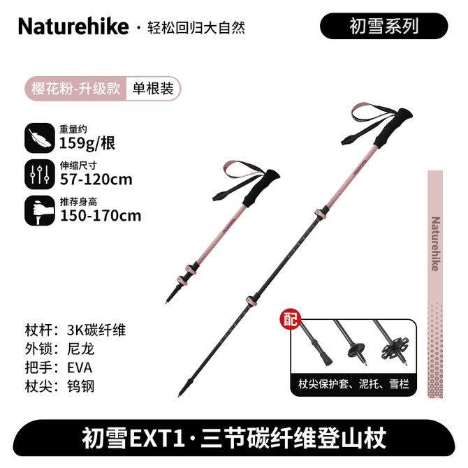 挪客(NatureHike) 初雪EXT1-三节碳素登山杖碳纤维户外伸缩徒步专业登山杖 樱花粉 57-120cm 初雪EXT1-三节碳纤维登山杖樱花粉CNK2300DS010 樱花粉 57-120cm 兑换价格 7000 里程 会员卡别 终身白金卡 白金卡 金卡 银卡 普通卡 儿童卡 服务 由 亿宇安百户外专营店 发货并提供售后 颜色: 粉色 购买数量: 件 库存件 配送地址: 立即购买 加入购物车 成功添加到购物车 关闭 购物车共有 种商品 总金额为: