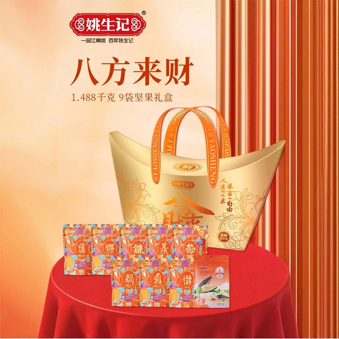姚生记 八方来财礼盒1.488千克坚果果干精选礼盒送礼