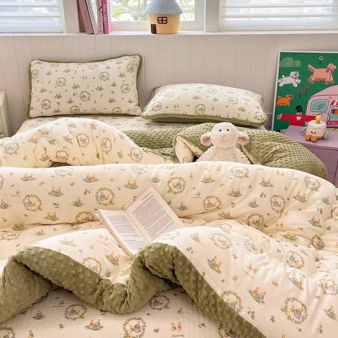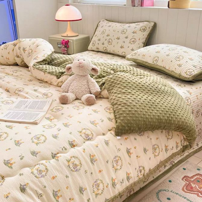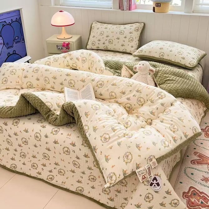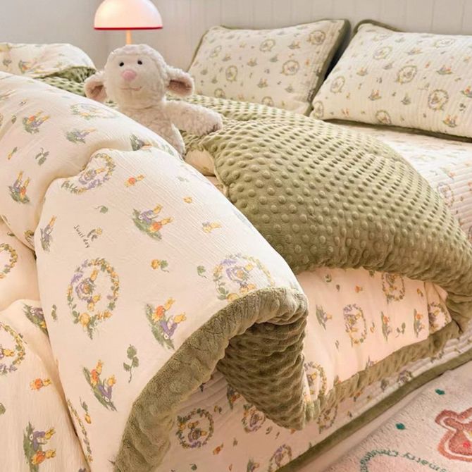 宜恋 卧室双人加厚豆豆冬被 2025 新款 AB 面聚酯纤维被芯 田园免AJF 200cm*230cm(6斤)
