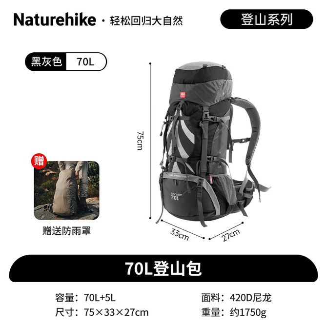 Naturehike 挪客70L登山包 户外徒步双肩背包男女大容量轻量化旅行野营多功能 70+5L/黑灰 NH70B070-B 材质:涤纶+尼龙+铝 容量:70L+5L 兑换价格 21500 里程 会员卡别 终身白金卡 白金卡 金卡 银卡 普通卡 儿童卡 服务 由 劲芳体育生活馆 发货并提供售后 颜色: 其他 购买数量: 件 库存件 配送地址: 立即购买 加入购物车 成功添加到购物车 关闭 购物车共有 种商品 总金额为: