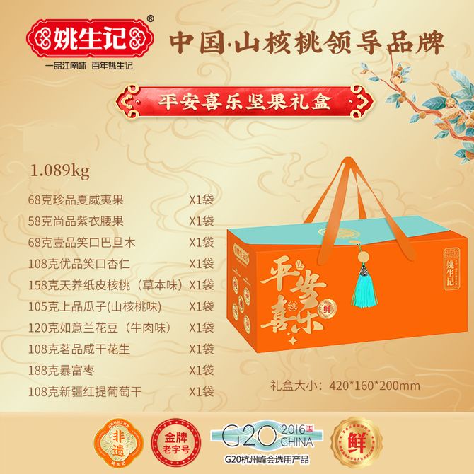 姚生记 坚果礼盒 平安喜乐礼盒A款1.089kg