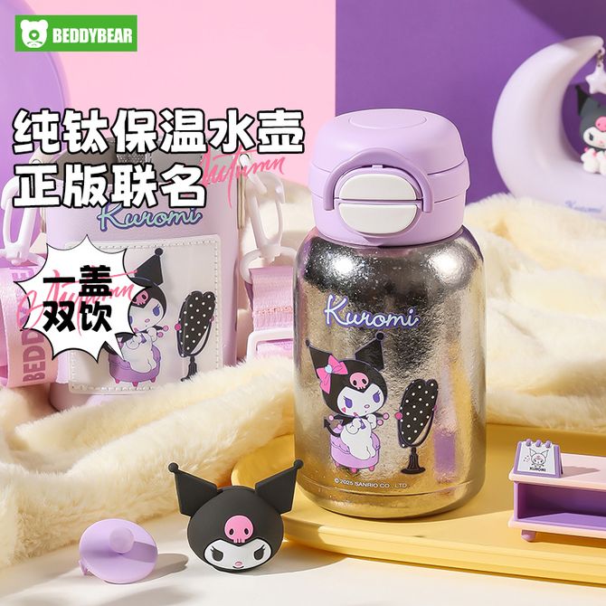 杯具熊(beddybear) 保温杯560ml容量纯钛保温水壶学生上学专用水杯开口笑钛杯-钛萌酷洛米
