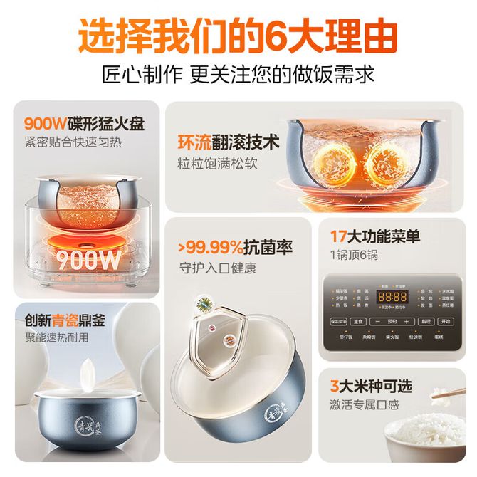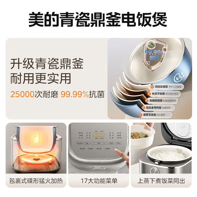 组合销售 产品介绍 产品规格 售后服务 产品咨询 发现好货 苏泊尔(SUPOR) 电饭煲电饭锅4L大容量 不粘内胆4-6个人前置大屏面板24小时预约上蒸下煮多功能家用智能SF40FC0063 7700 里程 美菱/MELNG 电饭煲3L触控式预约定时MF-LC3005 4400 里程 美的(Midea) 电饭煲 家用3L智能预约多功能电饭锅小型1-4人煮饭锅智能 白色 MB-FB30M161 7800 里程 苏泊尔(SUPOR) 迷你电饭煲家用电饭锅2-3人3L小容量蓝钻不粘内胆快煮饭功能智能预约小型多功能SF30FC0187 6100 里程 美的/Midea 电饭煲电饭锅3-4个人家用4L大容量聚能釜金属机身大火力米饭锅【升级焖香阀】RE417 8700 里程