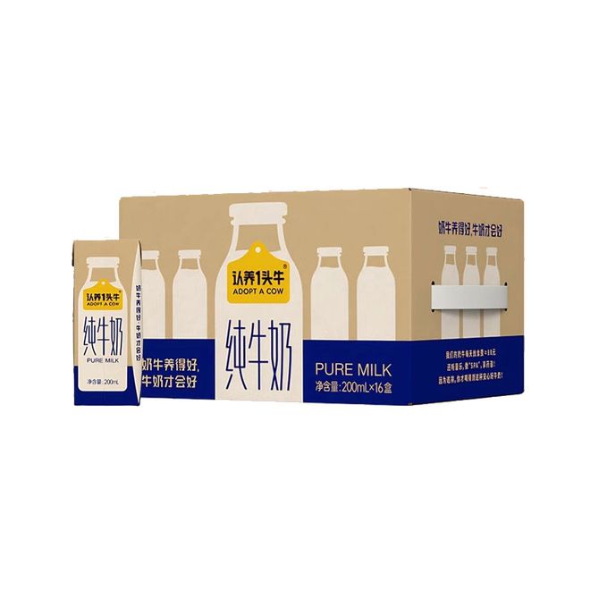 认养一头牛ADOPT A COW 纯牛奶200毫升*16盒 100%生牛乳 纯净零添加 新老包装随机发货 兑换价格 2000 里程 会员卡别 终身白金卡 白金卡 金卡 银卡 普通卡 儿童卡 服务 由 凯赋甄选 发货并提供售后 规格: 盒装 购买数量: 件 库存件 配送地址: 立即购买 加入购物车 成功添加到购物车 关闭 购物车共有 种商品 总金额为: 组合销售 产品介绍 产品规格 售后服务 产品咨询 发现好货 蒙牛 特仑苏纯牛奶苗条装250ml×12盒 2900 里程 三元 经典小方白全脂纯牛奶250ml*24盒牛奶 整箱 3400 里程 伊利金典纯牛奶250ml*12盒整箱 2200 里程 伊利 金典纯牛奶整箱 250ml*12盒 3.6g乳蛋白 原生高钙 礼盒装 1800 里程 特仑苏 新日期纯牛奶250ml*12盒 3.6g乳蛋白 礼盒装 京东/顺丰发货 2400 里程