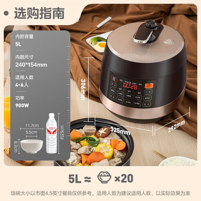 组合销售 产品介绍 产品规格 售后服务 产品咨询 发现好货 苏泊尔(SUPOR)电压力锅 6升大容量 智能触控 球釜双胆 开盖收汁 一键排压 SY-60YC8001Q 高压锅 16900 里程 美的/Midea 电压力锅家用5L大容量多功能高压锅双胆一键收汁智能预约不粘电高压锅电饭锅煮粥煲汤锅 一锅双胆【一键收汁入味】 YL50M1-702 10600 里程 苏泊尔(SUPOR) 5L电压力锅家用电高压锅双胆高压电饭锅煮饭智能预约 SY-50YC8186 11300 里程 美的/Midea 电压力锅 【一锅双胆】5L全自动家用智能预约 上蒸下煮 不粘双胆煲汤炖肉 YL50Q3-451 10900 里程 美的/Midea 电压力锅 高压锅家用电压力煲智能预约电饭煲大容量多功能定时预约电饭煲3-8人单胆旋钮款4L MY-E4809 8700 里程