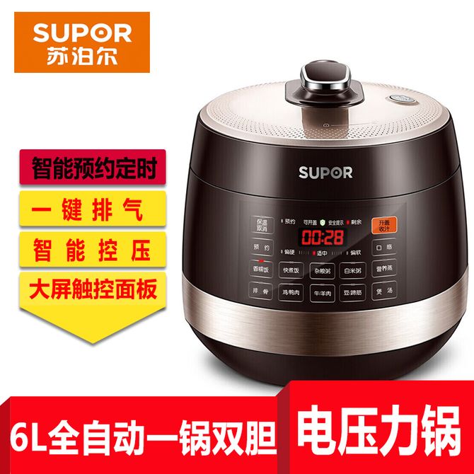 组合销售 产品介绍 产品规格 售后服务 产品咨询 发现好货 苏泊尔(SUPOR)电压力锅 6升大容量 智能触控 球釜双胆 开盖收汁 一键排压 SY-60YC8001Q 高压锅 16900 里程 美的/Midea 电压力锅家用5L大容量多功能高压锅双胆一键收汁智能预约不粘电高压锅电饭锅煮粥煲汤锅 一锅双胆【一键收汁入味】 YL50M1-702 10600 里程 苏泊尔(SUPOR) 5L电压力锅家用电高压锅双胆高压电饭锅煮饭智能预约 SY-50YC8186 11300 里程 美的/Midea 电压力锅 【一锅双胆】5L全自动家用智能预约 上蒸下煮 不粘双胆煲汤炖肉 YL50Q3-451 10900 里程 美的/Midea 电压力锅 高压锅家用电压力煲智能预约电饭煲大容量多功能定时预约电饭煲3-8人单胆旋钮款4L MY-E4809 8700 里程
