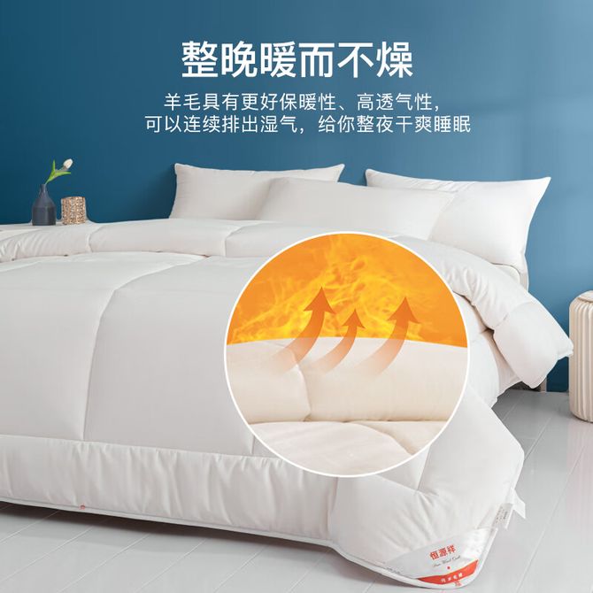 恒源祥 澳洲进口 一星级100%羊毛被冬被加厚保暖棉被春秋被子被芯6斤 200*230cm 澳洲进口羊毛 保暖蓄热 贴身舒适 兑换价格 20000 里程 会员卡别 终身白金卡 白金卡 金卡 银卡 普通卡 儿童卡 服务 由 逸轩家纺旗舰店 发货并提供售后 被、单尺寸: 200*230cm 颜色: 其他 购买数量: 件 库存件 配送地址: 立即购买 加入购物车 成功添加到购物车 关闭 购物车共有 种商品 总金额为: 组合销售 产品介绍 产品规格 售后服务 产品咨询 发现好货 洁丽雅(Grace)全棉夏凉被棉花被双人空调被 纯棉被子可机洗 薄被芯 洛洛繁花 150*200cm(Grace) 6100-7400 里程 洁帛 A类零压力抗菌防螨纤维春秋四季被 3500-3900 里程 北极绒(Bejirog) 泡泡纱大豆纤维四季被 细腻温润吸湿透气不闷不燥 BJRB314 8000 里程 洁丽雅/Grace 10%大豆纤维 纤维被子 空调夏凉被 (多规格可选)CP2262柠檬青 2500-3400 里程 京东京造 暖暖大白被 100%原生纤维A类磨毛厚实保暖被子冬季被芯 4斤-6.8斤 多尺寸可选 5000-7000 里程