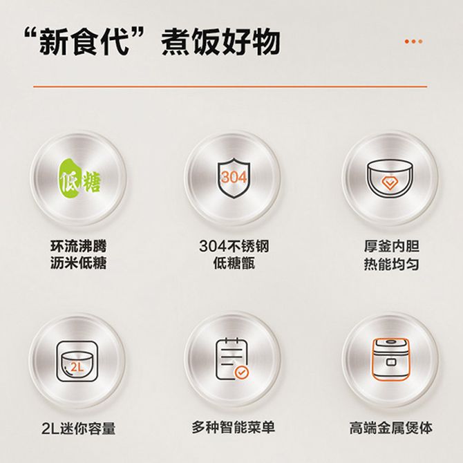 苏泊尔(SUPOR) 低糖电饭煲家用2升米汤分离电饭锅微电脑智能预约电饭锅 SF20FC2125 2L迷你容量 304不锈钢低糖甑 多种智能菜单 厚釜内胆热能均匀 高端金属煲体 兑换价格 13000 里程 会员卡别 终身白金卡 白金卡 金卡 银卡 普通卡 儿童卡 服务 由 优米酷家电生活馆 发货并提供售后 颜色: 其他 购买数量: 件 库存件 配送地址: 立即购买 加入购物车 成功添加到购物车 关闭 购物车共有 种商品 总金额为: 组合销售 产品介绍 产品规格 售后服务 产品咨询 发现好货 苏泊尔(SUPOR) 电饭煲电饭锅4L大容量 不粘内胆4-6个人前置大屏面板24小时预约上蒸下煮多功能家用智能SF40FC0063 8300 里程 奥克斯/AUX 电饭煲3L电饭锅 2-3人小型预约智能电饭煲VK-309F2 5100 里程 苏泊尔(SUPOR) 迷你电饭煲家用电饭锅2-3人3L小容量蓝钻不粘内胆快煮饭功能智能预约小型多功能SF30FC0187 6100 里程 美菱/MELNG 电饭煲3L触控式预约定时MF-LC3005 4400 里程 苏泊尔(SUPOR) 煮饭煮粥智能预约多功能一锅多用小型微压电饭锅30FC0187 7200 里程