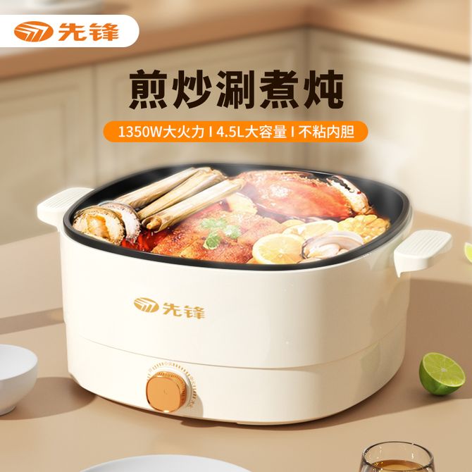 先锋 多功能电热锅 旋钮控温一锅多用精通煎炒炖煮涮温控保护不粘内胆上蒸下煮小方锅 锅身加深 一锅多用 两档火力 4.5L容量 兑换价格 6100 里程 会员卡别 终身白金卡 白金卡 金卡 银卡 普通卡 儿童卡 服务 由 广西桂福礼供应链管理有限公司 发货并提供售后 颜色: 其他 购买数量: 件 库存件 配送地址: 立即购买 加入购物车 成功添加到购物车 关闭 购物车共有 种商品 总金额为: