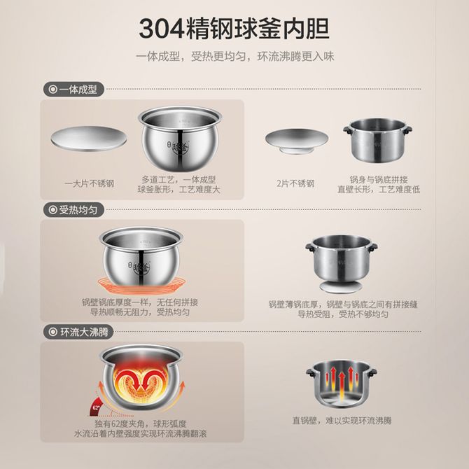 组合销售 产品介绍 产品规格 售后服务 产品咨询 发现好货 苏泊尔(SUPOR)电压力锅 6升大容量 智能触控 球釜双胆 开盖收汁 一键排压 SY-60YC8001Q 高压锅 16900 里程 美的/Midea 电压力锅家用5L大容量多功能高压锅双胆一键收汁智能预约不粘电高压锅电饭锅煮粥煲汤锅 一锅双胆【一键收汁入味】 YL50M1-702 10600 里程 苏泊尔(SUPOR) 5L电压力锅家用电高压锅双胆高压电饭锅煮饭智能预约 SY-50YC8186 11300 里程 美的/Midea 电压力锅 【一锅双胆】5L全自动家用智能预约 上蒸下煮 不粘双胆煲汤炖肉 YL50Q3-451 10900 里程 美的/Midea 电压力锅 高压锅家用电压力煲智能预约电饭煲大容量多功能定时预约电饭煲3-8人单胆旋钮款4L MY-E4809 8700 里程