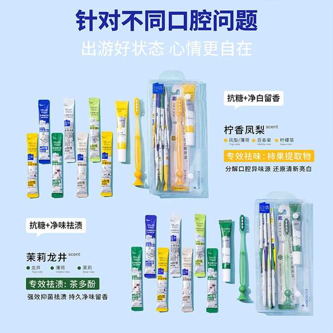白惜/ecoobix 七天旅行套装柠香凤梨(漱口水12ml*7支+牙刷*1支+牙膏25g*1支) 凤梨味益生菌男女士氨基酸含氟口臭清洁新抗糖口气礼物 兑换价格 1300 里程 会员卡别 终身白金卡 白金卡 金卡 银卡 普通卡 儿童卡 服务 由 北京华夏祥龙 发货并提供售后 化妆品容量: 组合 购买数量: 件 库存件 配送地址: 立即购买 加入购物车 成功添加到购物车 关闭 购物车共有 种商品 总金额为: 组合销售 产品介绍 产品规格 售后服务 产品咨询 发现好货 舒客 沁爽清新漱口水(茶爽新)500mL*2大瓶 去口臭温和不辣口无醇涑口液口味含氟 1600 里程 高露洁(Colgate)漱口水250ml*2瓶元气薄荷味 1700 里程 高露洁(Colgate)贝齿鲜果薄荷漱口水500ml×3(新老包装随机发货) 3400 里程 舒客 专效抑菌漱口水500ML*2 清新口气 高效杀菌(不同包装随机) 1400 里程 高露洁/Colgate 漱口水 温和0酒精 500ml单瓶装 茉莉绿茶味 新旧包装随机发 1300 里程