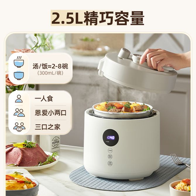 组合销售 产品介绍 产品规格 售后服务 产品咨询 发现好货 苏泊尔(SUPOR)电压力锅 6升大容量 智能触控 球釜双胆 开盖收汁 一键排压 SY-60YC8001Q 高压锅 16900 里程 美的/Midea 电压力锅家用5L大容量多功能高压锅双胆一键收汁智能预约不粘电高压锅电饭锅煮粥煲汤锅 一锅双胆【一键收汁入味】 YL50M1-702 10600 里程 苏泊尔(SUPOR) 5L电压力锅家用电高压锅双胆高压电饭锅煮饭智能预约 SY-50YC8186 11300 里程 美的/Midea 电压力锅 【一锅双胆】5L全自动家用智能预约 上蒸下煮 不粘双胆煲汤炖肉 YL50Q3-451 10900 里程 美的/Midea 电压力锅 高压锅家用电压力煲智能预约电饭煲大容量多功能定时预约电饭煲3-8人单胆旋钮款4L MY-E4809 8700 里程