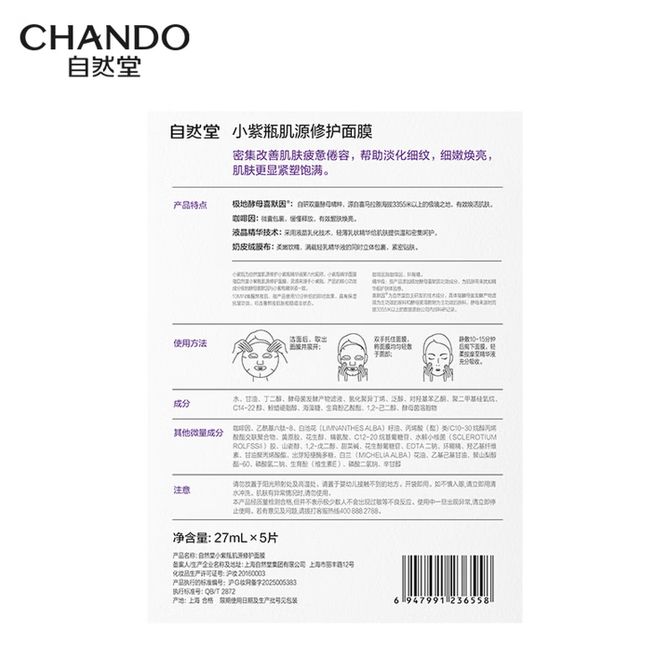 自然堂/Chando 小紫瓶肌源修护面膜27mL×5片 修护细嫩淡化细纹抗疲老敏肌适用 14天淡化疲态纹路 兑换价格 6000 里程 会员卡别 终身白金卡 白金卡 金卡 银卡 普通卡 儿童卡 服务 由 锦宁商贸 发货并提供售后 面膜规格: 盒 购买数量: 件 库存件 配送地址: 立即购买 加入购物车 成功添加到购物车 关闭 购物车共有 种商品 总金额为: