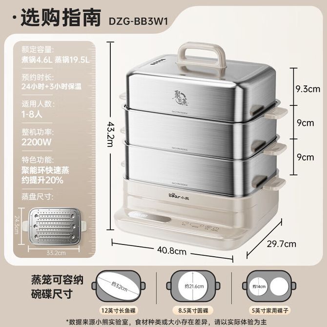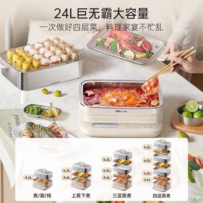小熊/Bear 多功能锅电蒸锅蒸炖煮一体三层灵活组合DZG-BB3W1 蒸炖煮一体全自动预约 兑换价格 21700 里程 会员卡别 终身白金卡 白金卡 金卡 银卡 普通卡 儿童卡 服务 由 鑫城家电 发货并提供售后 颜色: 其他 购买数量: 件 库存件 配送地址: 立即购买 加入购物车 成功添加到购物车 关闭 购物车共有 种商品 总金额为: 组合销售 产品介绍 产品规格 售后服务 产品咨询 发现好货 苏泊尔(SUPOR)空气炸锅 家用多功能4.2L大容量 烤箱薯条机 无油烟电炸锅 大功率 无油低脂煎炸锅KJ42D811 6500 里程 苏泊尔(SUPOR)空气炸锅家用3L大容量电炸锅 蒸汽嫩炸多功能无油烟煎炸薯条机烤箱KD30DQ815 21700 里程 美的/Midea 空气炸锅 家用5升可视炸锅金属内腔体微蒸汽多功能智能双旋控温电炸锅 KZE5089 10900 里程 美的/Midea 空气炸锅 可视 不用翻面 金属内腔 蒸汽嫩炸 三档烘烤风力 5L KZC5089 10700 里程 美的/Midea 电火锅 电煮锅 大功率速沸多用途多功能锅一体 旋钮式无极火力调节 6.5L 5200 里程