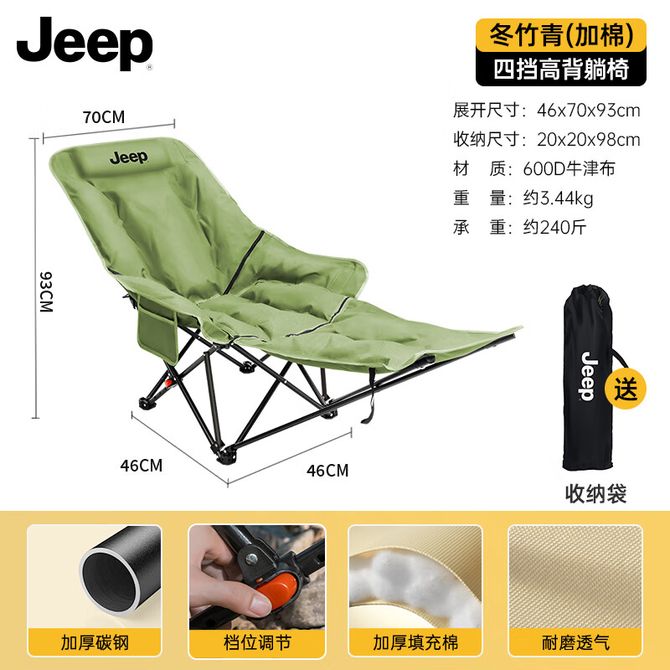 Jeep 升级款4档调节太空棉高背搁脚躺椅 黄色(细沙黄)、其他(冬竹青) 两色可选 兑换价格 5200 里程 会员卡别 终身白金卡 白金卡 金卡 银卡 普通卡 儿童卡 服务 由 至恩户外运动专营店 发货并提供售后 颜色: 黄色 其他 购买数量: 件 库存件 配送地址: 立即购买 加入购物车 成功添加到购物车 关闭 购物车共有 种商品 总金额为: 组合销售 产品介绍 产品规格 售后服务 产品咨询 发现好货 Jeep 户外轻便露营便携折叠椅-特大号 42*42*70cm (多色可选) 1500 里程 探险者(TAN XIAN ZHE) 露营车推车户外营地折叠拖车野餐野营桌板手拉车 黑色 6600 里程 尚烤佳 折叠椅 折叠凳 月亮椅 钓鱼凳子 户外便携折叠露营椅子 写生椅子(山晴)SKJ-367 1900 里程 徽羚羊 户外露营便携折叠logo椅-特大号-44*44*72cm 1500-1700 里程 趣游帮 户外折叠便携高背月亮椅 (Q311) 卡其色 47*47*91cm 6000 里程