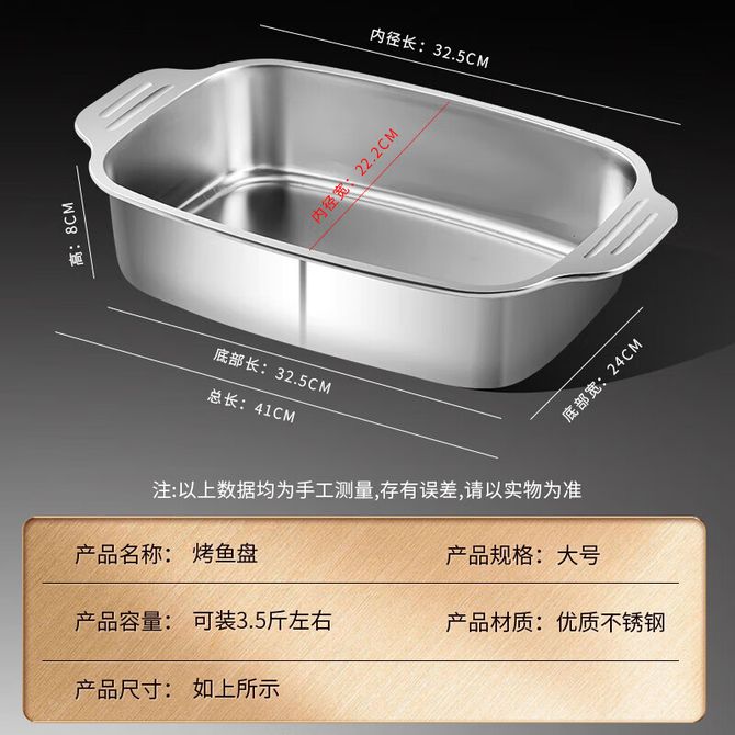 拜杰(BJ) 不锈钢盘子 加深方盘餐盘蒸烤鱼炉烤鱼盘小吃盘烧烤盘 40cm大号 40cm大号尺寸为40*24*8.5cm 兑换价格 2000 里程 会员卡别 终身白金卡 白金卡 金卡 银卡 普通卡 儿童卡 服务 由 成都得之悦电子商务有限公司 发货并提供售后 颜色: 其他 购买数量: 件 库存件 配送地址: 立即购买 加入购物车 成功添加到购物车 关闭 购物车共有 种商品 总金额为:
