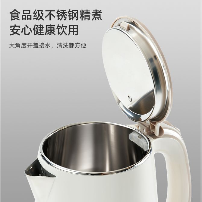 龙的 电热水壶2.3L加大容量一键简单煮家用电水壶烧水壶电热水壶安全煮水无异味 米白色 大口径壶口 双层隔热壶身 食品级不锈钢 1500W大功率 兑换价格 3000 里程 会员卡别 终身白金卡 白金卡 金卡 银卡 普通卡 儿童卡 服务 由 北京致诚博雅贸易有限公司 发货并提供售后 颜色: 其他 购买数量: 件 库存件 配送地址: 立即购买 加入购物车 成功添加到购物车 关闭 购物车共有 种商品 总金额为: 组合销售 产品介绍 产品规格 售后服务 产品咨询 发现好货 苏泊尔(SUPOR)电水壶 1.7L 不锈钢/YL SW-17S13A 5700 里程 志高/Chigo 电水壶烧水壶1.8L大容量电热水壶双层防烫自动断电家用烧水开水壶不锈钢 电水壶 DC-A18F 1900 里程 美的/Midea 电热水壶家用大容量烧水壶热水壶双层防烫电水壶304不锈钢内胆自动断电分离式拔盖 MK-SH15X1-102 3000 里程 小熊/Bear 电水壶家用烧水壶 不锈钢自动断电恒温热水壶保温一体电热水壶1.5L容量 3500 里程 小熊/Bear 烧水壶电水壶热水壶电热水壶开水壶304不锈钢内胆双层防烫1.5L大容量ZDH-Q15U8 3000 里程