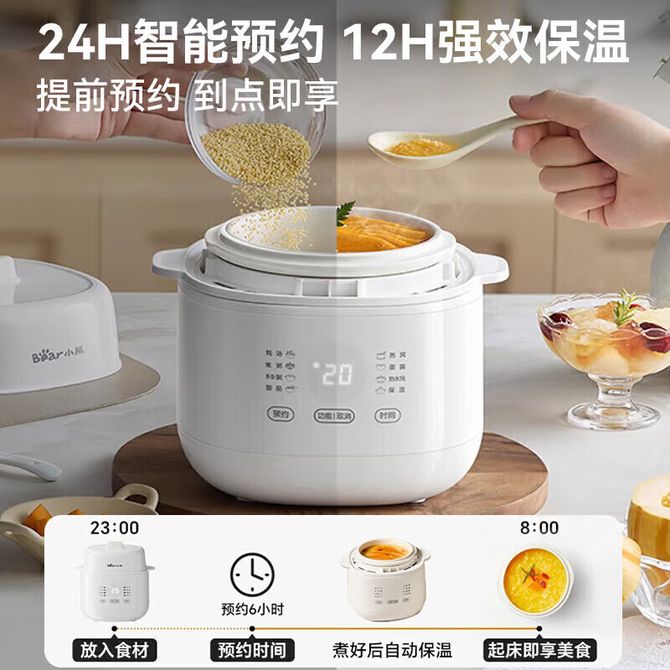 组合销售 产品介绍 产品规格 售后服务 产品咨询 发现好货 小熊/Bear 电炖锅1-2人小炖锅煮粥锅智能预约定时煲汤锅炖汤锅燕窝炖盅 4400 里程 西屋/Westinghouse 多功能电煮锅电炖锅1.6L一锅多能WFB16A 11600 里程 苏泊尔(SUPOR) 电火锅家用不粘煎涮炖煮多功能4L大容量一体式大火力电煮锅不粘煎涮炖煮多功能料理锅 H40YK757 5700 里程 小熊(Bear)电炖锅电炖盅煮粥神器煲汤锅炖汤锅婴儿煮粥锅熬粥燕窝炖盅DDG-E15K2 4800 里程 利仁(Liven)电炒锅电煮锅电火锅 家用多功能小电锅电炖锅宿舍泡面锅 4.5L容量 DHG-X451 5200 里程